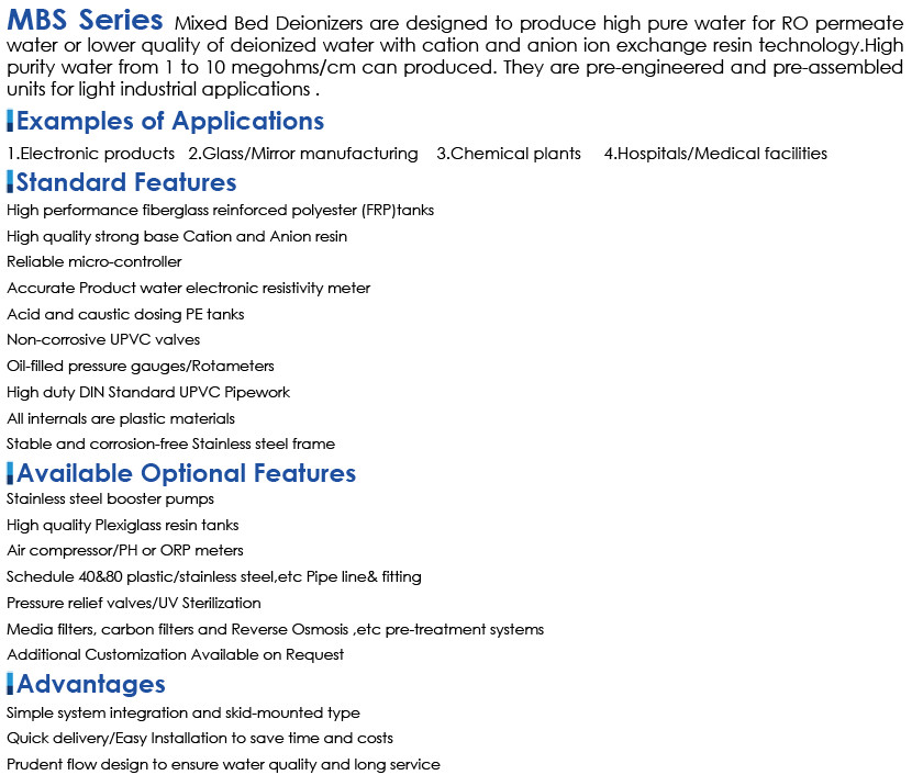 • Product description: MBS Series Mixed Bed Deionizers