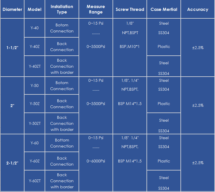 Measure Range::0~15Psi...0~8500Psi( with Bar or MPa printed);