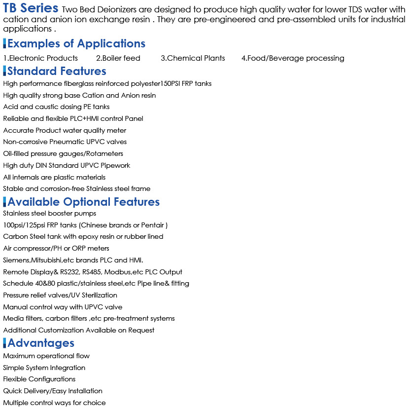 • Product description: TB Series Two Bed Deionizers