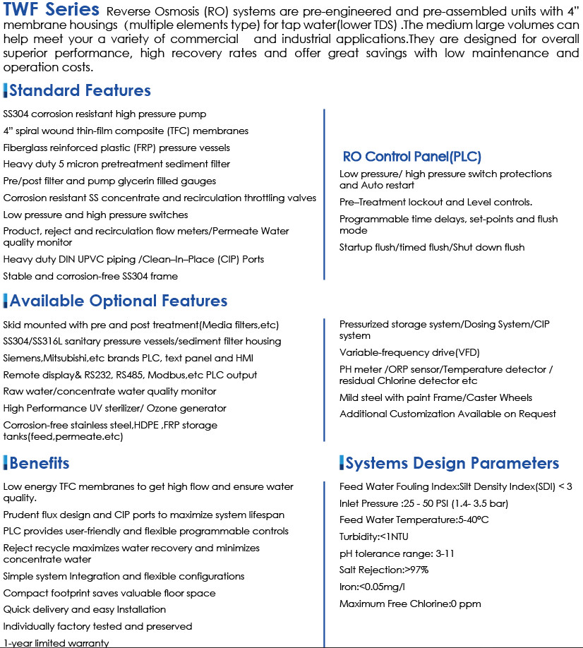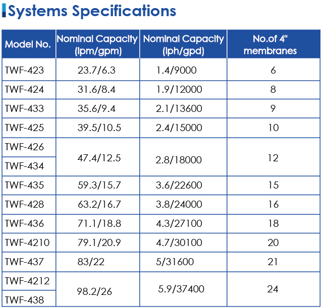 All above is only for reference.Temperature change and feedwater quality, such as high TDS levels will significantly affect the systems production capabilities and performance.As for your specific feedwater conditions , please contact Aqualitek support